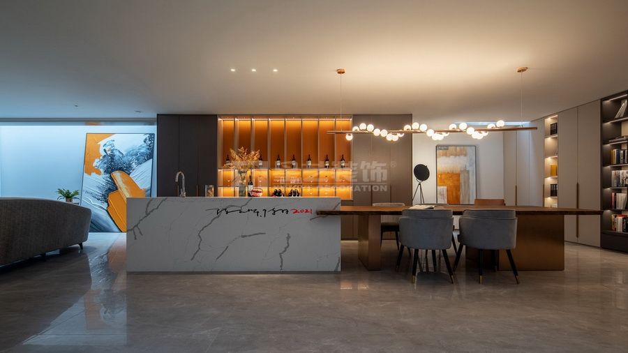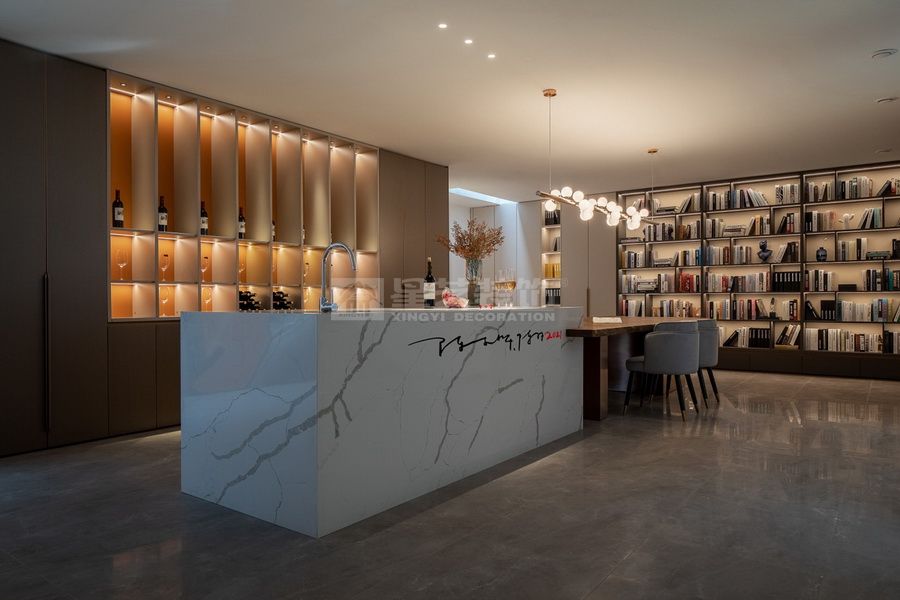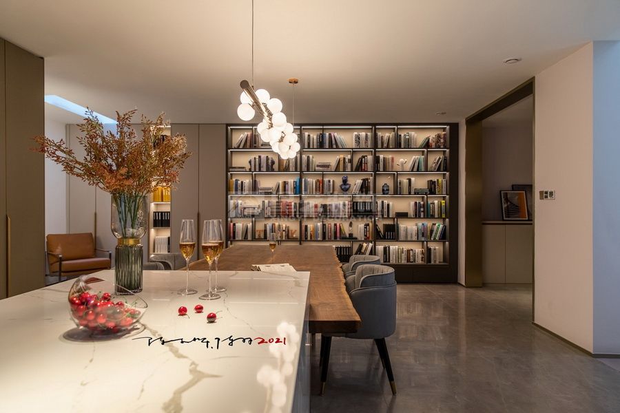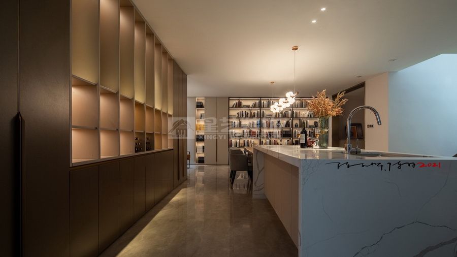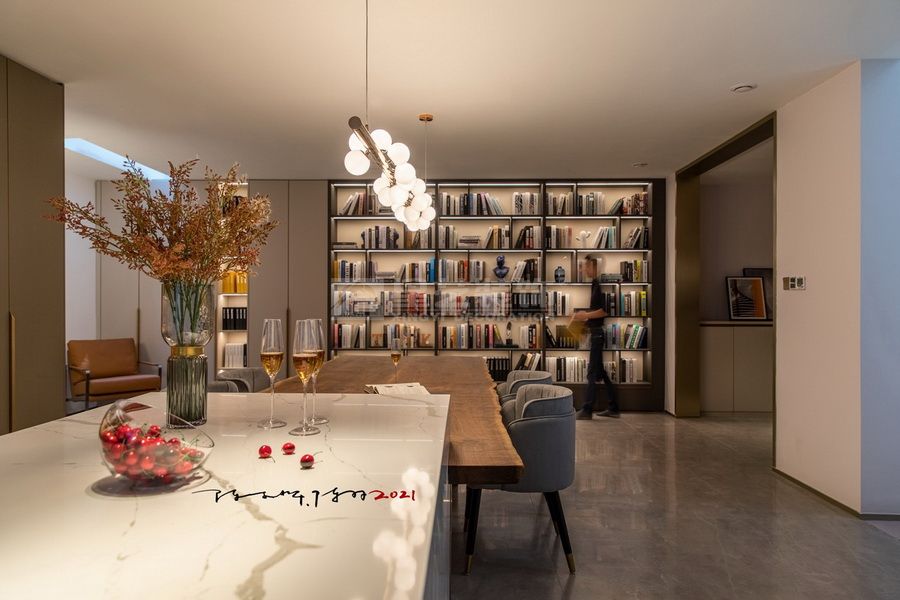 项目为一处单体别墅住宅群内,作为传统意义的住宅,我们也试图能够保持纯朴的生活自在。谭博士和尚姐自身的素质教养使得对于这栋住宅的定位趋于明显,我们一起试图让空间保持传统的余味,形式与用材、色彩与构成、在历史与未来来回游荡,书写独特的设计符号。 首层与地下层功能与空间的区分,我们也尝试在没有破坏整体的情况下,延续设计语言。地下层的长岛台空间与书柜结合,整个无任何间隔的大空间给未来的生活方式提供各种可能性。