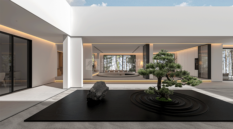 本案以“宝树”为核心,为宝树堂后裔打造兼具文化传承与生活温度的四层别墅,设计从堂号文化中提取“树”“玉”“庭”三大元素:空间布局围绕中心庭院展开,形成“一庭纳万象”的格局,呼应宝树堂“庭前育栋梁”的文化内核。
