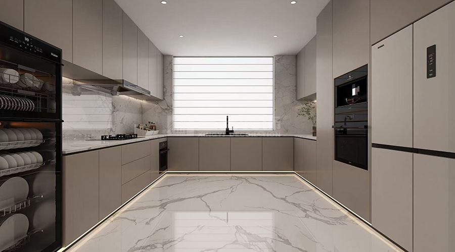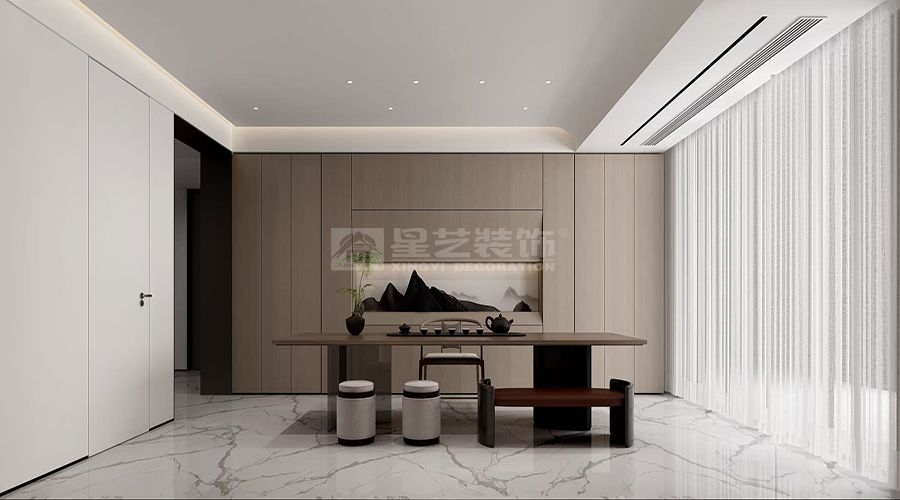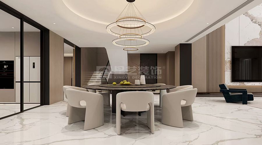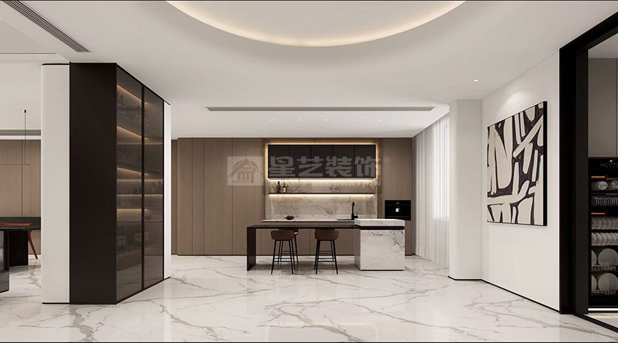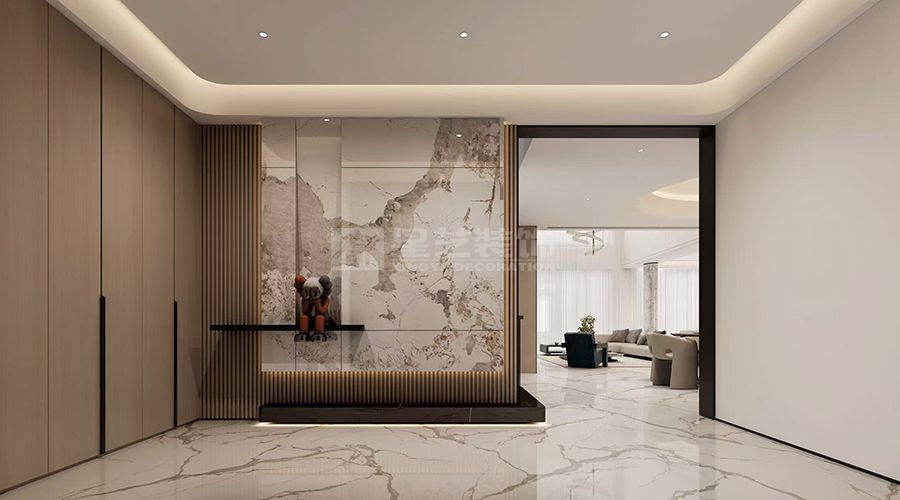 意式轻奢风整体采用中性色调,内敛干净, 奢而不华 高级灰色调与亮面光感相互调和,辅以精致的用材用料 , 将豪华与舒适融合在一起,营造一种大气,静谧,优雅的空间氛围