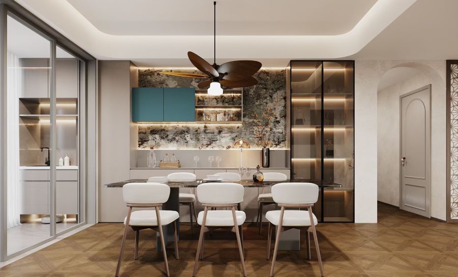 基于度假居所的复合型需求,设计师从空间架构、风格融合、功能配置三大维度展开系统性优化,打造出「社交-娱乐-休闲」三位一体的度假生活场景。
