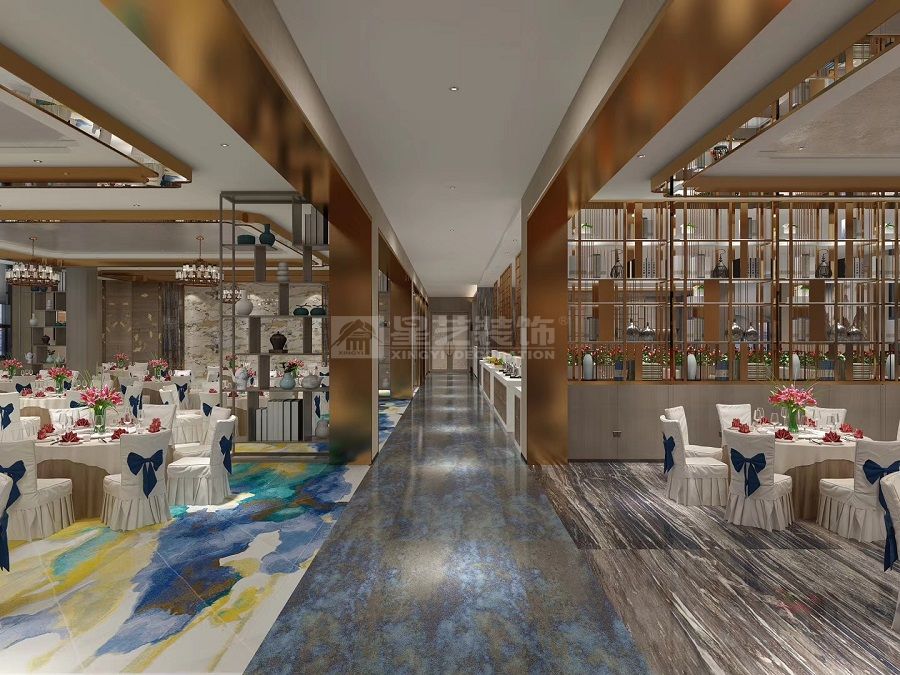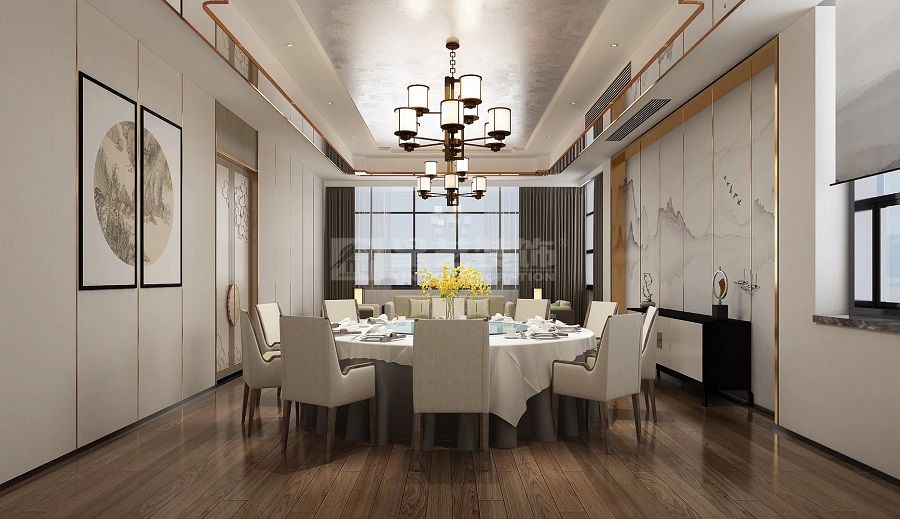 本空间为高端餐饮宴会场景(含包间、宴会大厅、走廊),以新中式风格为核心,融合现代轻奢美学与传统东方意境,兼顾宴会的仪式感、用餐的舒适性与空间的功能性.