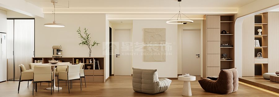 以 “奶油般的温柔包裹” 为核心,打造兼具治愈感与实用性的居家空间。摒弃锐利线条与高饱和色彩,通过低饱和度色调、软糯材质与柔和光影的交织,还原生活本真的松弛感,让空间成为卸下疲惫、安放情绪的 “避风港”,适配现代都市人对宁静舒适生活的追求。