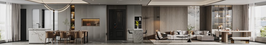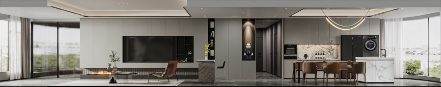 以开放布局整合平层功能,纯粹白墙与温润木饰构成基调。采用隐藏式收纳与精准线条切割,最大化引入自然光影,于极简中塑造宁静而通透的生活场域。