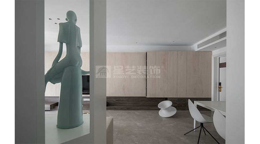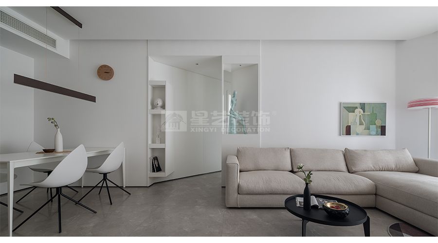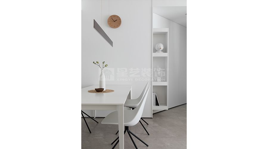 本空间以现代极简为设计核心,以纯白与浅木色构建通透基底,用利落的几何线条勾勒空间轮廓。客厅的一体化柜体、简约布艺沙发,搭配餐厅的极简桌椅与原木装饰,消弭冗余设计。通过留白与材质的极简碰撞,辅以艺术摆件点缀,让功能性与美学感共生,打造出简约而不简单的现代生活方式。