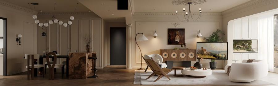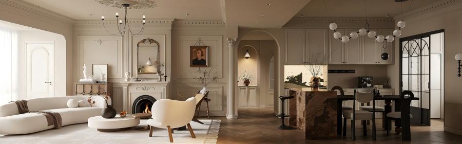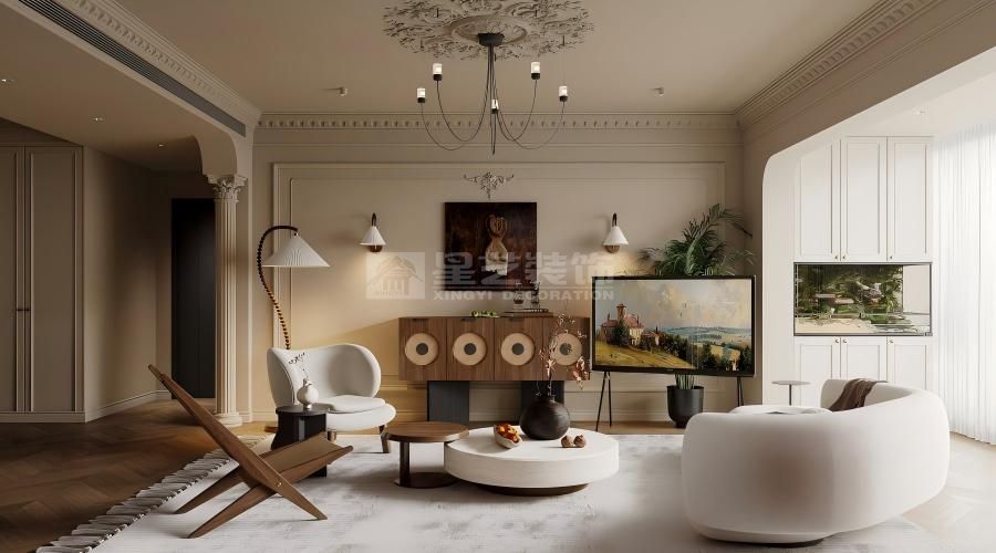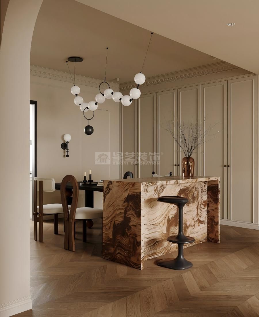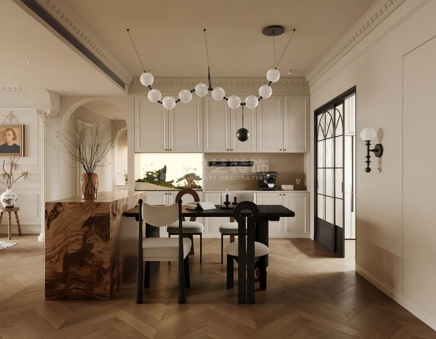 “曦”即晨光,寓意家是沐浴温暖晨光、开启美好生活的容器。设计采用开放通透的布局,引光入室。法式双开门、弧形拱窗等元素被现代手法重新诠释,线条更显修长利落。空间内摆放大量绿植与鲜花,将“桂悦”的愉悦自然感引入,在法式的优雅中,注入勃勃生机与清新氧气。