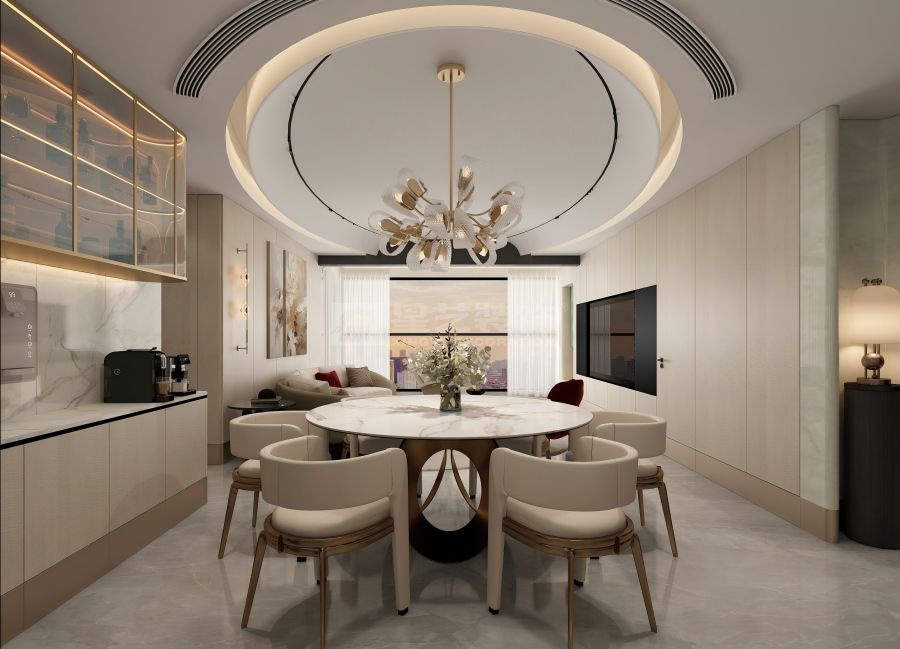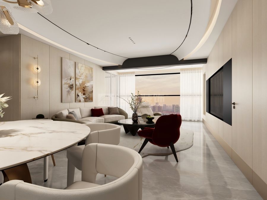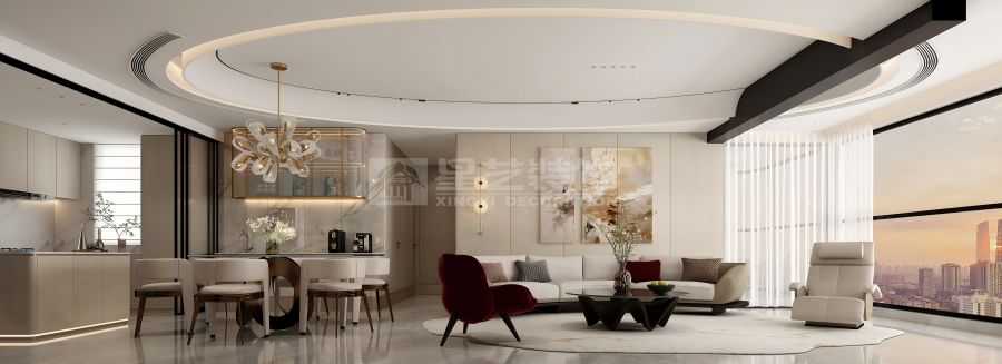 这个空间以「光」为核心线索,将都市繁华与自然质感融合,打造出兼具仪式感与松弛感的高端居住场景,传递 “于繁华中寻得静谧,在精致里感受温度” 的生活态度。